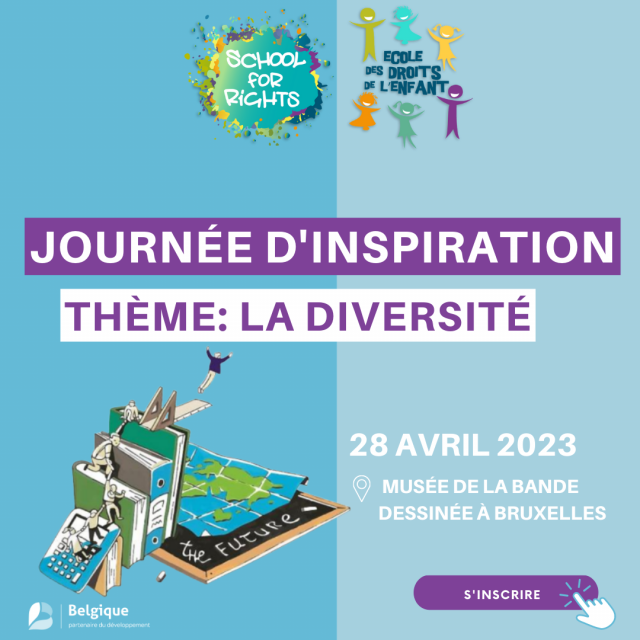 Nous avons le plaisir de vous convier à notre prochaine journée d'inspiration qui se déroule le vendredi 28 avril au Musée de la bande dessinée à Bruxelles. Cette année, nous avons choisi de parler de la diversité à l'école, une thématique omniprésente et qui nous concerne toutes et tous. Chaque membre de l’équipe éducative est le bienvenu pour apprendre, partager vos expériences, discuter et vous inspirer mutuellement !