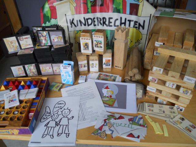 Faites une valise des droits de l'enfant. Dans cette valise ou boîte, vous pouvez rassembler différents jeux dont vous faites une version adaptée aux droits de l'enfant, par exemple Jenga, Domino, Kubb,... La valise ou la boîte ou le caisson peuvent être mis à la disposition des enfants sur un terrain de jeu, dans la cour de récréation d’une école, dans un mouvement de jeunesse, etc.