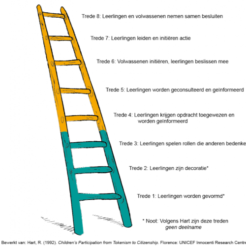 Leraren die nog wat aarzelen, kiezen eerst voor een methode waarbij ze de touwtjes in handen houden en evolueren daarna verder als ze dat willen. Bij de tools waarbij leerlingen inspraak krijgen over de manier van evalueren of straffen en belonen in de klas bijvoorbeeld is de uitkomst minder voorspelbaar. Daarnaast kan gebruik worden gemaakt van de ‘participatiegraden van Hart’ zodat leraren bewust en planmatig kunnen kiezen. De leraar zegt: ‘ik doe een bevraging omdat ik wil weten wat jullie belangrijk vinden, ik bekijk thuis de resultaten en ik laat weten wat ik ermee zal doen’. Dat is een lagere participatiegraad dan ‘we bekijken samen de resultaten en beslissen samen’. Maar beide zijn oké.